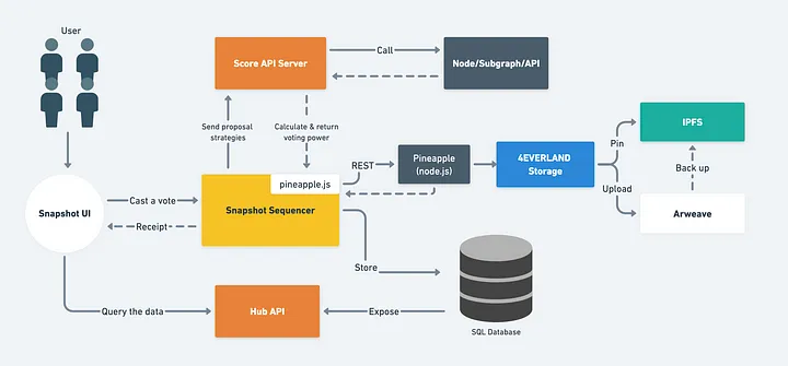 In the ever-evolving blockchain ecosystem, decentralized governance plays a crucial role in democratizing decision-making processes within DAOs, DeFi protocols, and NFT communities. The open-source voting platform, [Snapshot](https://snapshot.org/), has emerged as a vital tool for these communities, enabling them to conduct seamless voting processes without incurring gas fees. In the subsequent sections of this article, we will delve into each layer of Snapshot’s implementation and examine the significant role played by 4EVERLAND in ensuring verifiable off-chain storage of data.